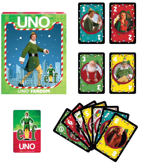 - The UNO game players love features iconic images from the world of the movie Elf to get card lovers in the spirit!